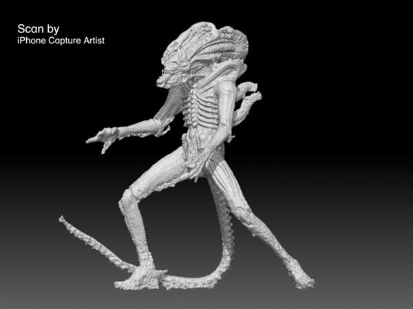 为了庆祝“外星人日(Alien Day)”,3D扫描程序库SnapTank发起了一项异形(xenomorph)模型扫描实验,分别使用了三种方式扫描:“入门级”(智能手机);“业余爱好者”(Olympus E-M10);“专业级”(家庭工作室)。最终的扫描结果公布在了网上,我们可以对其有一个直观的印象和对比。